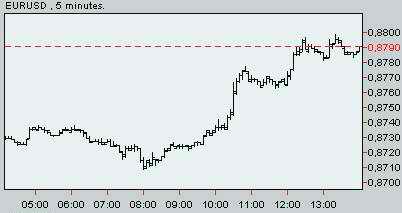 - курс Евро изменился по отношению к курсу доллара с 08 часов до 14 часов с уровня 0,8710 до уровня 0,8800. Это довольно большое изменение: в среднем курс евро за день изменяется на меньшую величину: около 60-80 пунктов, но нередки движения и более 100 пунктов.